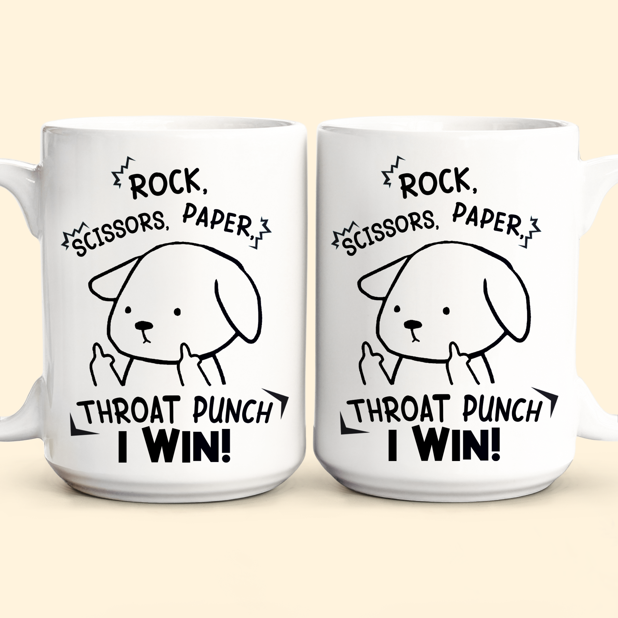 Funny Mug – Rock Paper Scissors Throat Punch I Win – Fun Gifts For Coworker, Friends, Boss – Personalized Mug