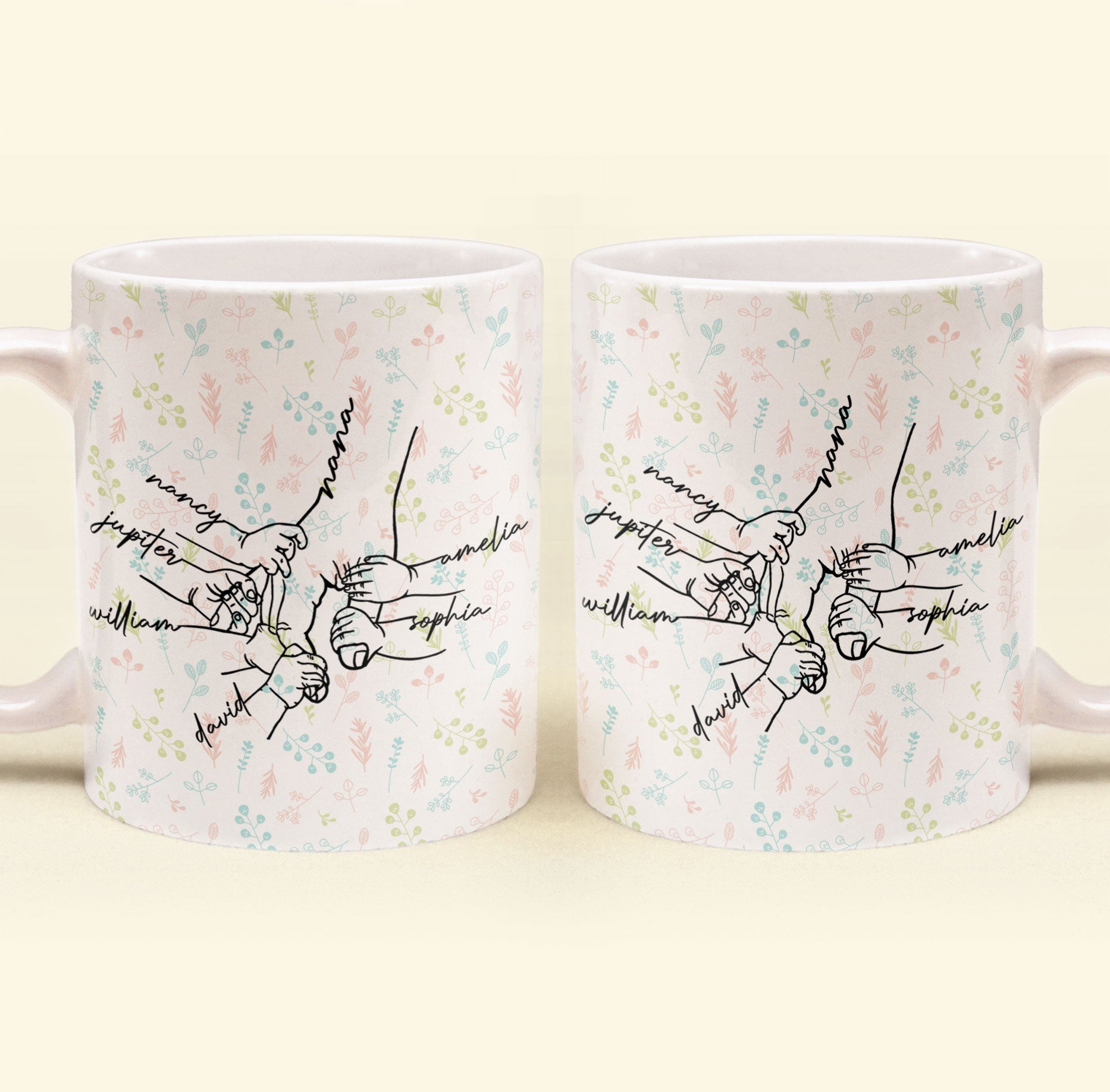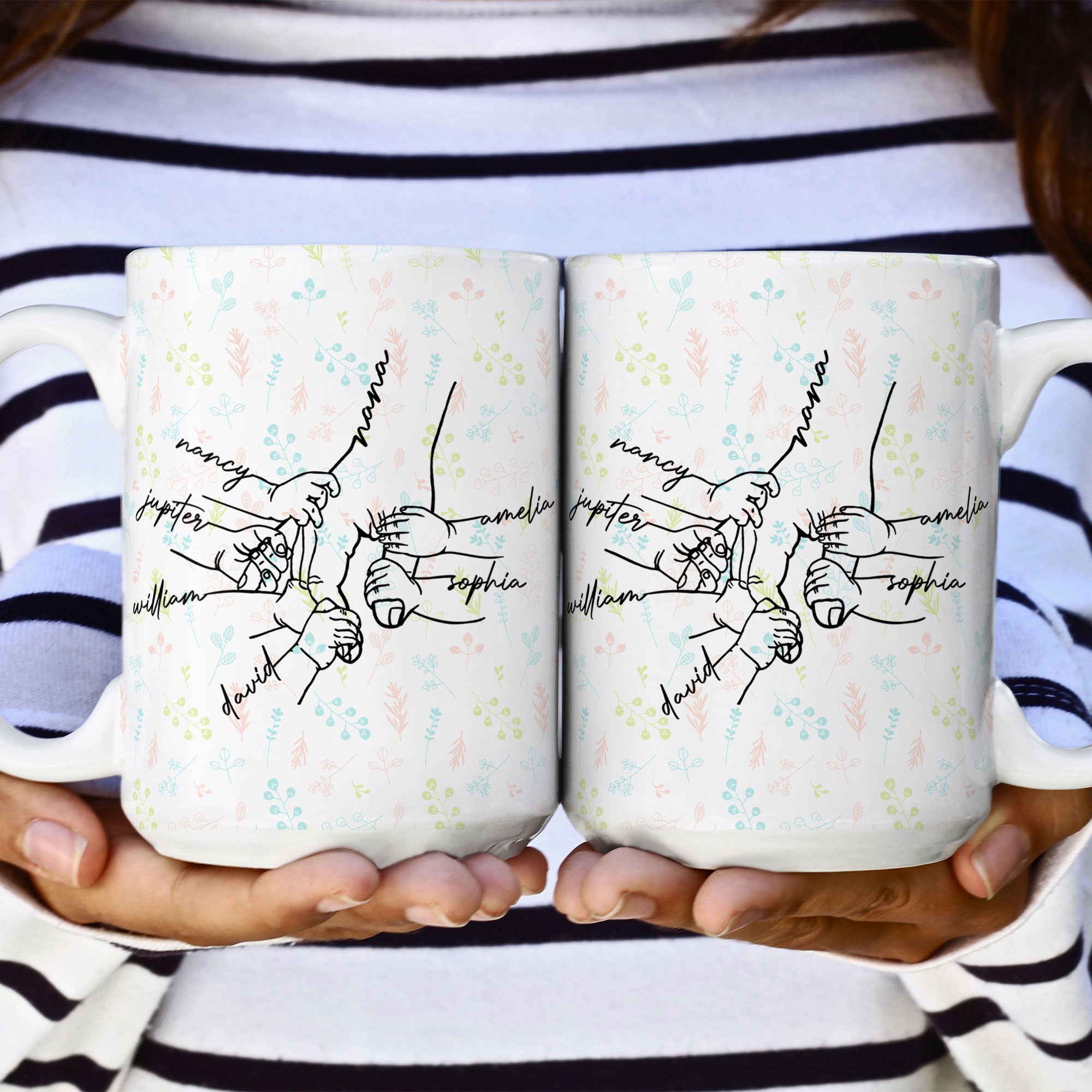 Celebrate the special bond between grandma and her grandchildren with this Personalized Mug featuring a heartfelt “hand in hand” design. Perfect as a sentimental gift, this mug can be customized with each grandchild’s name, making every sip a warm reminder of the love she shares with them. Whether it’s a morning coffee or an evening tea, grandma will adore holding this thoughtful piece, filled with the names of the little ones who mean the world to her.